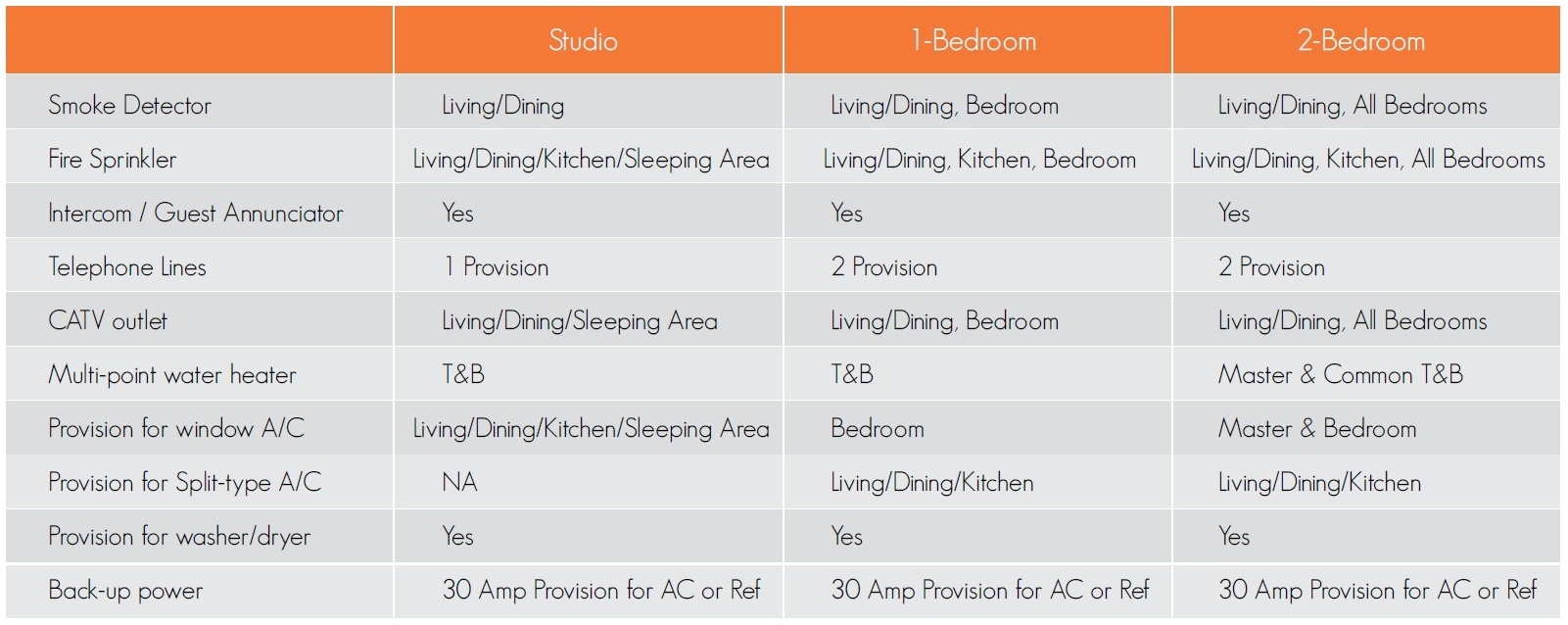 - Automatic Standby Generator System (100% back-up for common areas/basic back-up power on all units)