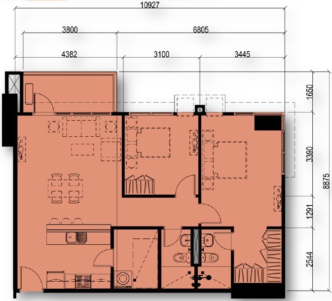 The Lerato Tower 3 – 2 Bedroom Floor Plan Unit 07 & 11 – Approximately 78 sqm – 84 sqm