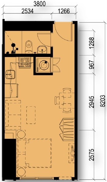 The Lerato Tower 3 – Studio Floor Plan Unit 05, 06, 09, 10, 12 & 14- Approximately 30 sqm