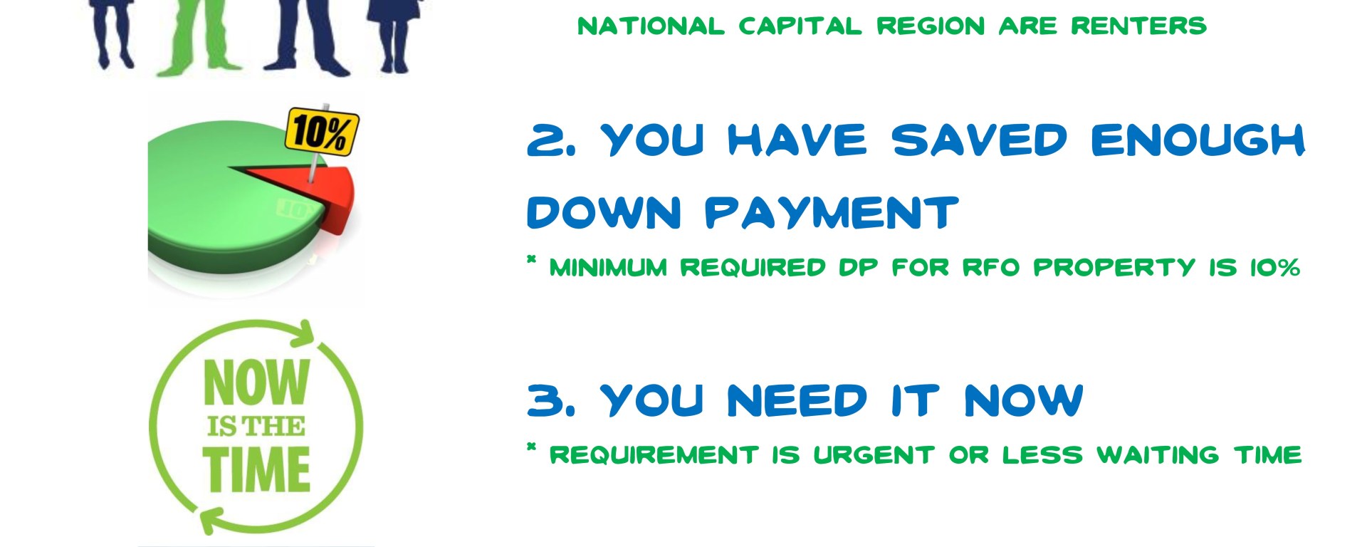 Rent to own is not for everybody. So to set your expectation, I’m not here to differentiate or prove if ready for occupancy properties are better than preselling ones or vice versa. I believe that they both have their own pros and cons. And just like any form of products or services, they both serve a specific need. Gone were the days when your only option in buying a real estate property are preselling projects. So in line with that, my goal for this particular post, is to help those “underserved” segment of the real estate market. Those who are specifically looking for ready units. At the same time spread the new world of opportunities that ready for occupancy offers. Check out the infographic below.