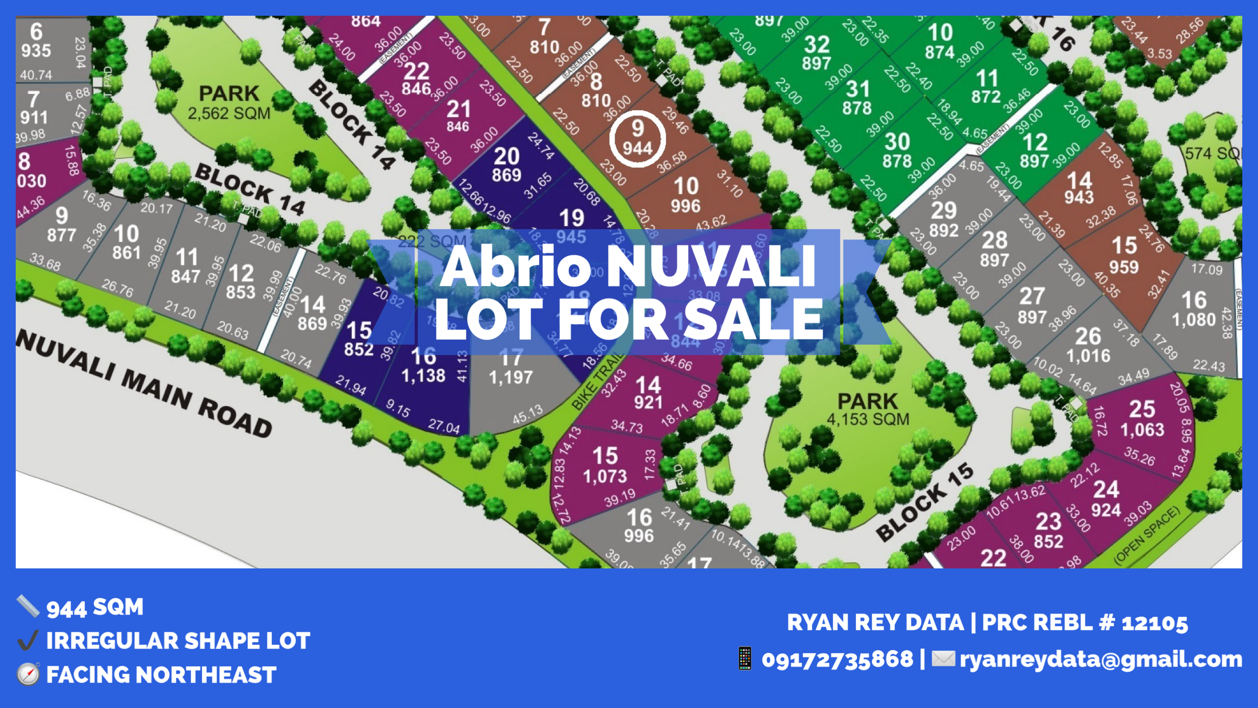 Abrio NUVALI LOT FOR SALE Phase 2 Block 15 Lot 9 PROPERTY INFORMATION Facing Northeast Property Name: Abrio NUVALI Property Type: Lot Phase: 2 Block: 15 Lot: 9 Lot Area: 944 sqm Price: ₱ 50,976,000 Abrio NUVALI LOT FOR SALE Phase 2 Block 15 Lot 9 INQUIRE HERE HOME