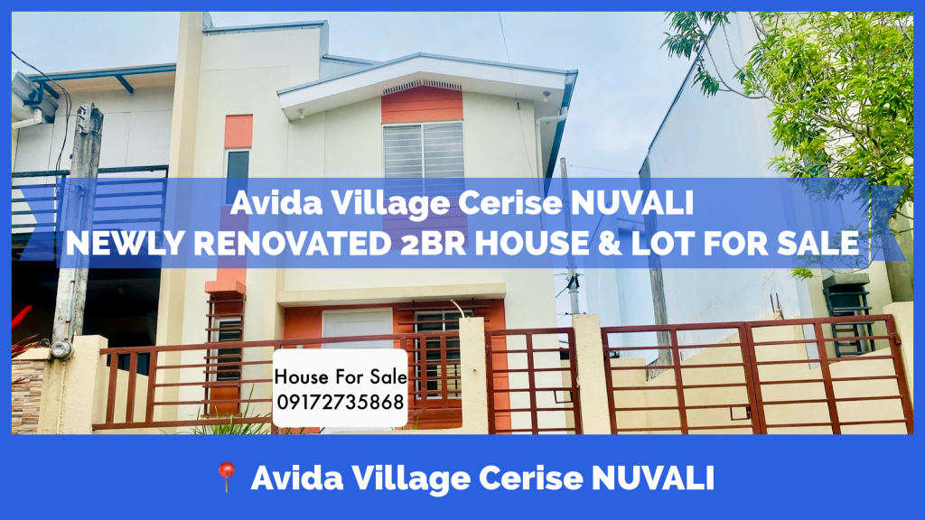 Avida Village Cerise NUVALI NEWLY RENOVATED 2BR HOUSE AND LOT FOR SALE Block 25 Lot 6 PROPERTY INFORMATION Property Name: Avida Village Cerise NUVALI Property Type: House and Lot Block: 25 Lot: 6 Lot Area: 88 sqm Floor Area: 50 sqm Price: ₱ 4,100,000 Property ID: FSHL001 Avida Village Cerise NUVALI NEWLY RENOVATED HOUSE AND LOT FOR SALE Block 25 Lot 6 Facade Kitchen and Dining Area Living and Dining Area Living Area Master Bedroom Bedroom 2 INQUIRE HERE HOME