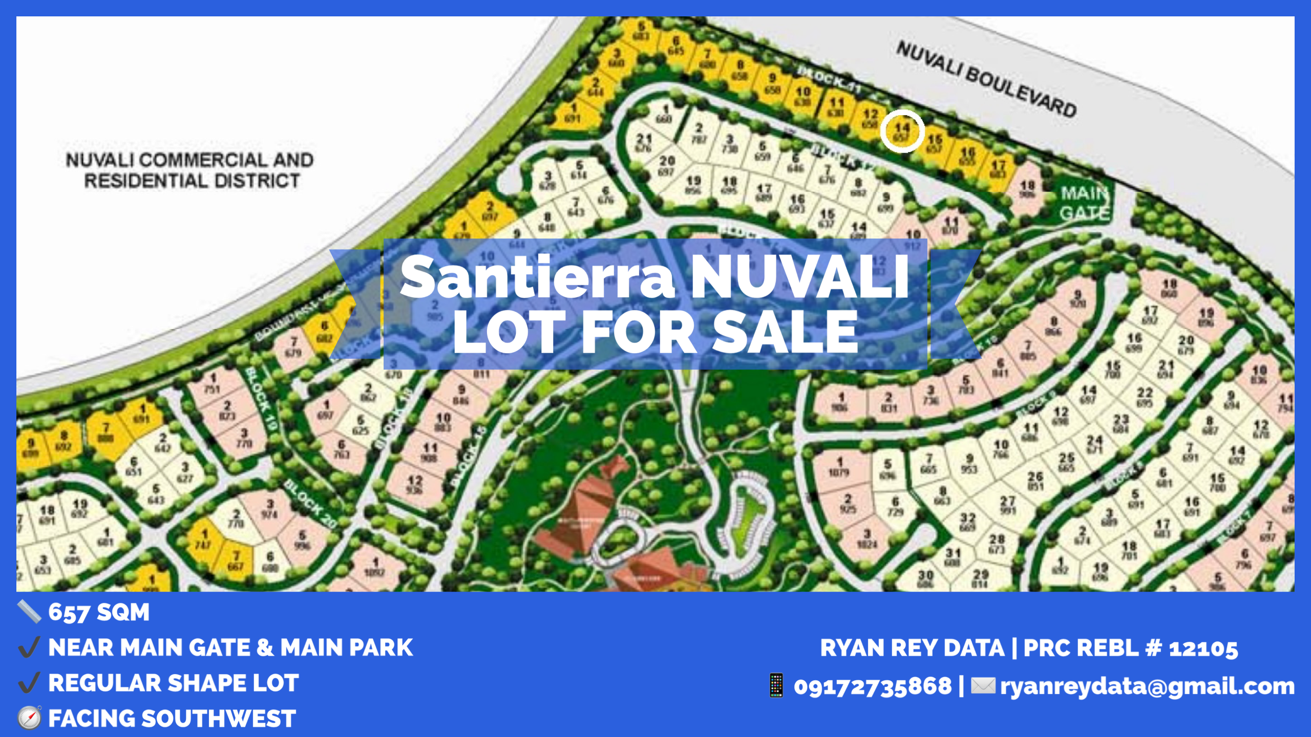 Santierra NUVALI LOT FOR SALE Tranche 2 Block 11 Lot 14 PROPERTY INFORMATION Near Main Gate & Main Park Property Name: Santierra NUVALI Property Type: Lot Tranche: 2 Block: 11 Lot: 14 Lot Area: 657 sqm Price: ₱ 26,280,000 Santierra NUVALI LOT FOR SALE Tranche 2 Block 11 Lot 14 INQUIRE HERE HOME